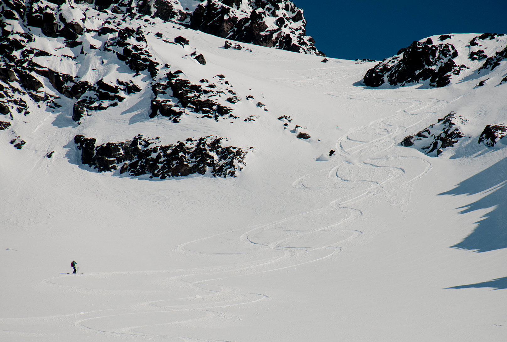 Едем на снегоходе с нартами по Сухой речке к подножиям Авачинского и Корякского вулканов. Забрасываемся на склоны Корякского вулкана несколько раз до отметок около 1600 м. Совершаем около 5 спусков. В течении дня отдыхаем с ланчем и горячим чаем, любуемся видами