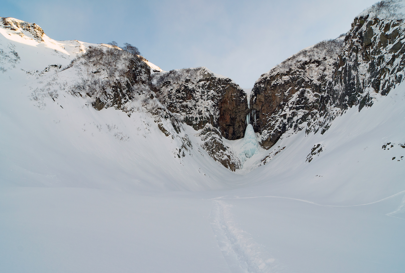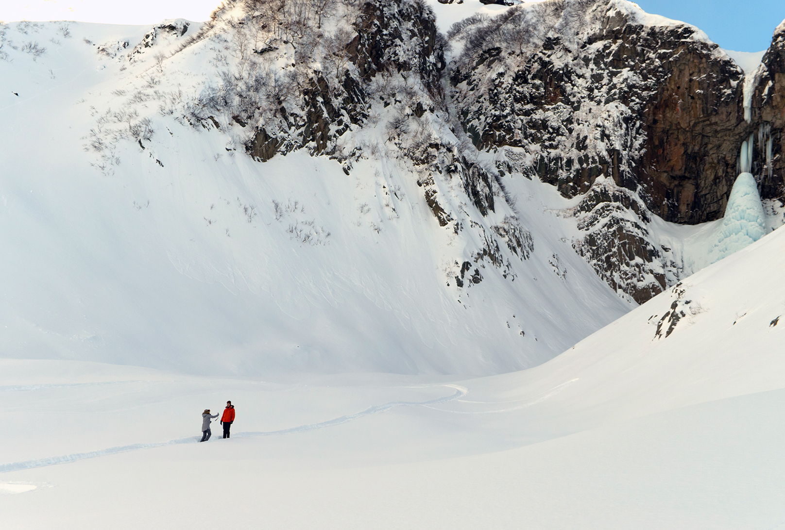 Едем на снегоходе с нартами по Сухой речке к подножиям Авачинского и Корякского вулканов. Забрасываемся на склоны Корякского вулкана несколько раз до отметок около 1600 м. Совершаем около 5 спусков. В течении дня отдыхаем с ланчем и горячим чаем, любуемся видами